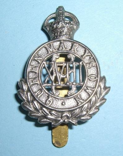 Die struck other rank 's cap badge comprising a circlet in white metal inscribed ' Queen Mary's Own ' surmounted by an Imperial Crown. In the centre the Roman numerals XVIII with original slider. In very good condition.Worn from 1910 onwards when King George V and Queen Mary took to the Throne. Prior to this, they had been known as the Princess of Wales's Own and wore a larger cap badge in brass.K&K Vol 1, Fig. 788 refers.C19.14