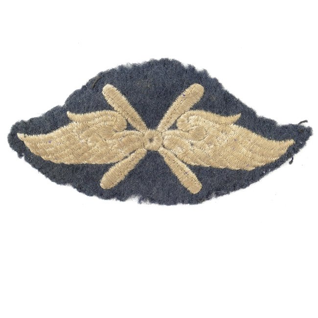 Luftwaffe Flight Technical Personnel's (Fliegendes Personal) trade badge (Tätigkeitsabzeichen). The flight personnel's trade badge was introduced for wear by qualified personnel on 13 May 1935, te badge was intended for wear by flight personnel that had not yet been awarded with the Pilots, Observers, Pilot/Observers or Air Gunners Badge. The badge is nicely machine-embroidered in white/silver on a blue-grey woolen background. Nice example in clearly worn and tunic removed condition.