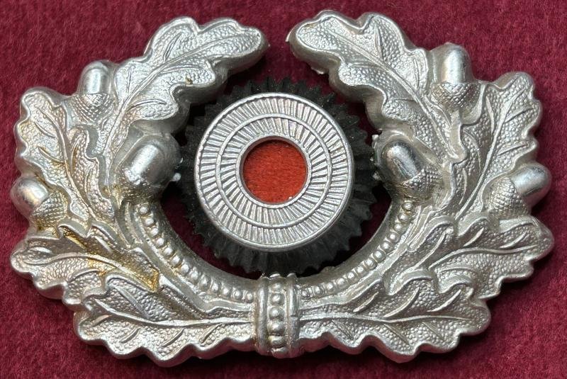 In an excellent condition a visor cap wreath with cockade for a Heer Marked on the back 2 Ges. Gesch. All splints present