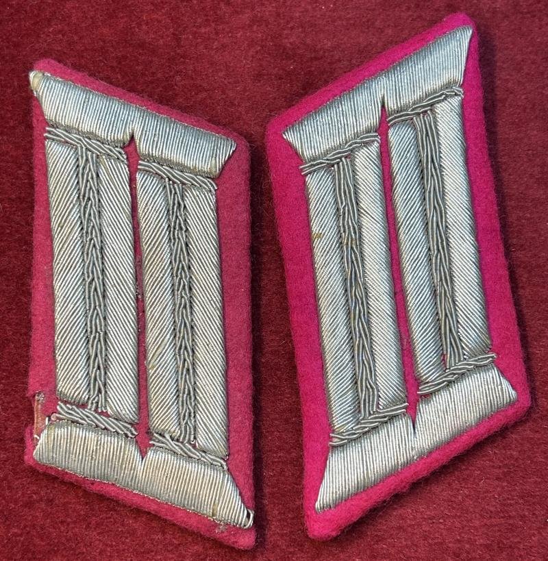 In a very good condition a pair of collar tabs for a leader of the voluntary fire department Both have been used and both have some moth damage. These specific collar tabs were worn by the following ranks: - Provinzialfeuerwehrführer, - Kreisfeuerwehrführer - Wehrführer