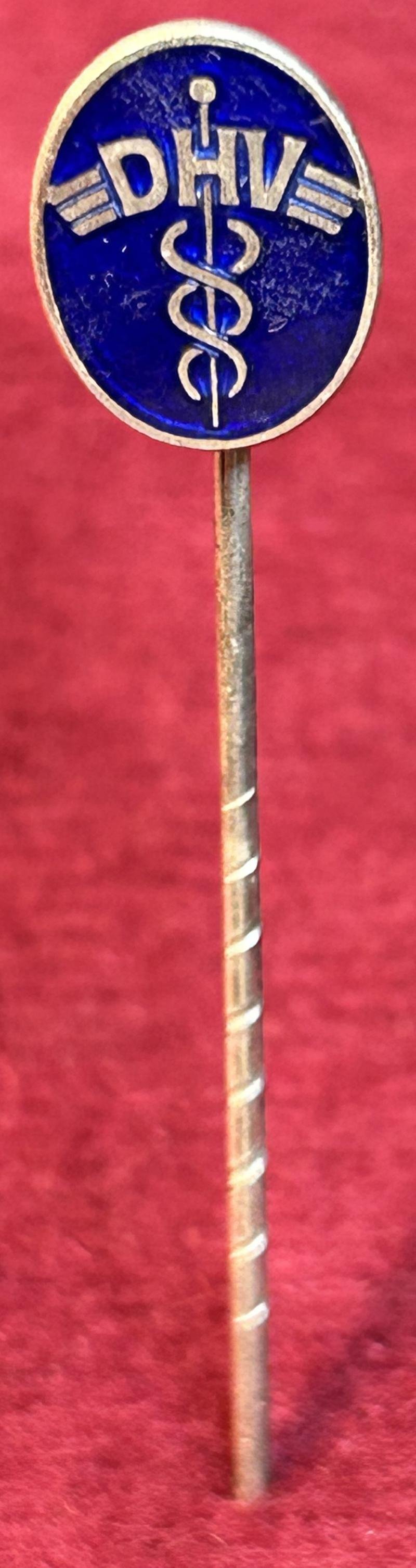 In an excellent condition a Bundesrepublik German Sales assistant association (DHV) During and before 1945 this organization was called the Deutschnationaler Handlungsgehilfen-Verband after 1945 this among other organizations were forbidden and new organizations came into its place like the Deutscher Handels- und Industrieangestellten-Verband or also known as the Deutschen Handlungsgehilfenverband which had almost the same emblem as before 1933 and the same letter DHV. This is a painted variant