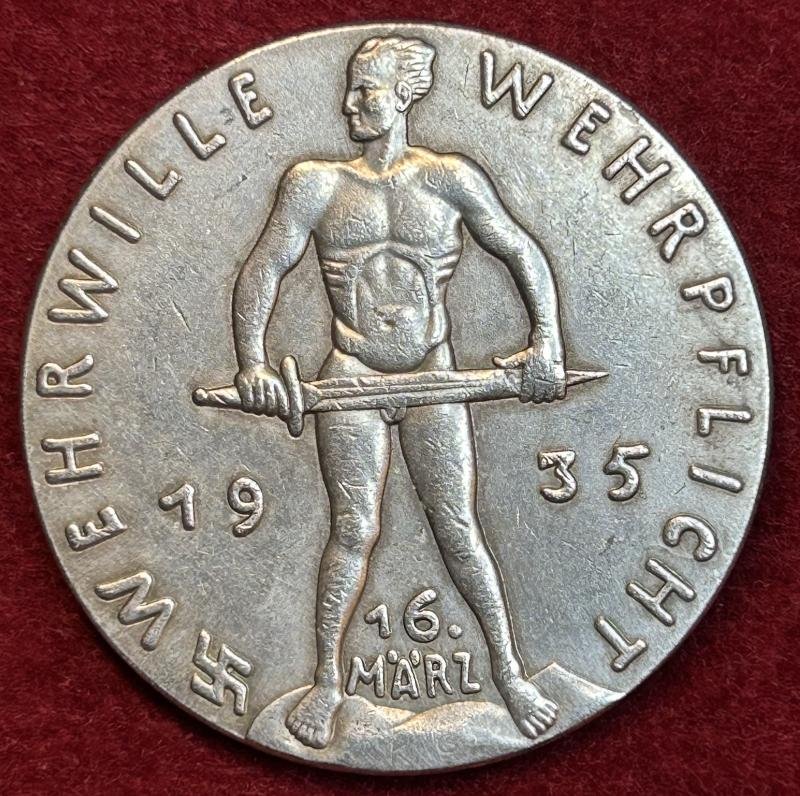 3rd Reich Silbermedaille Wehrwille Wehrpflicht-Einberufung 1935 (Goetz)