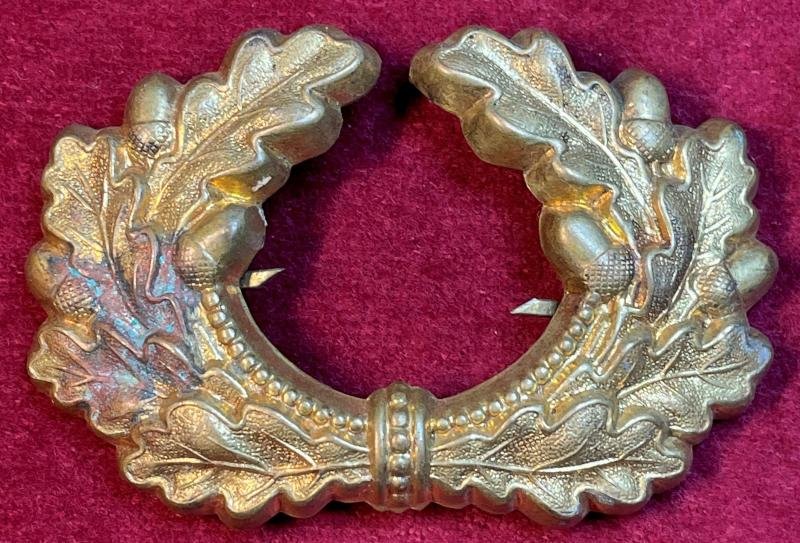 In a good but used condition a visor cap wreath for the Kriegsmarine or a Wehrmacht General Both prongs are present. Some rust present hence the price!
