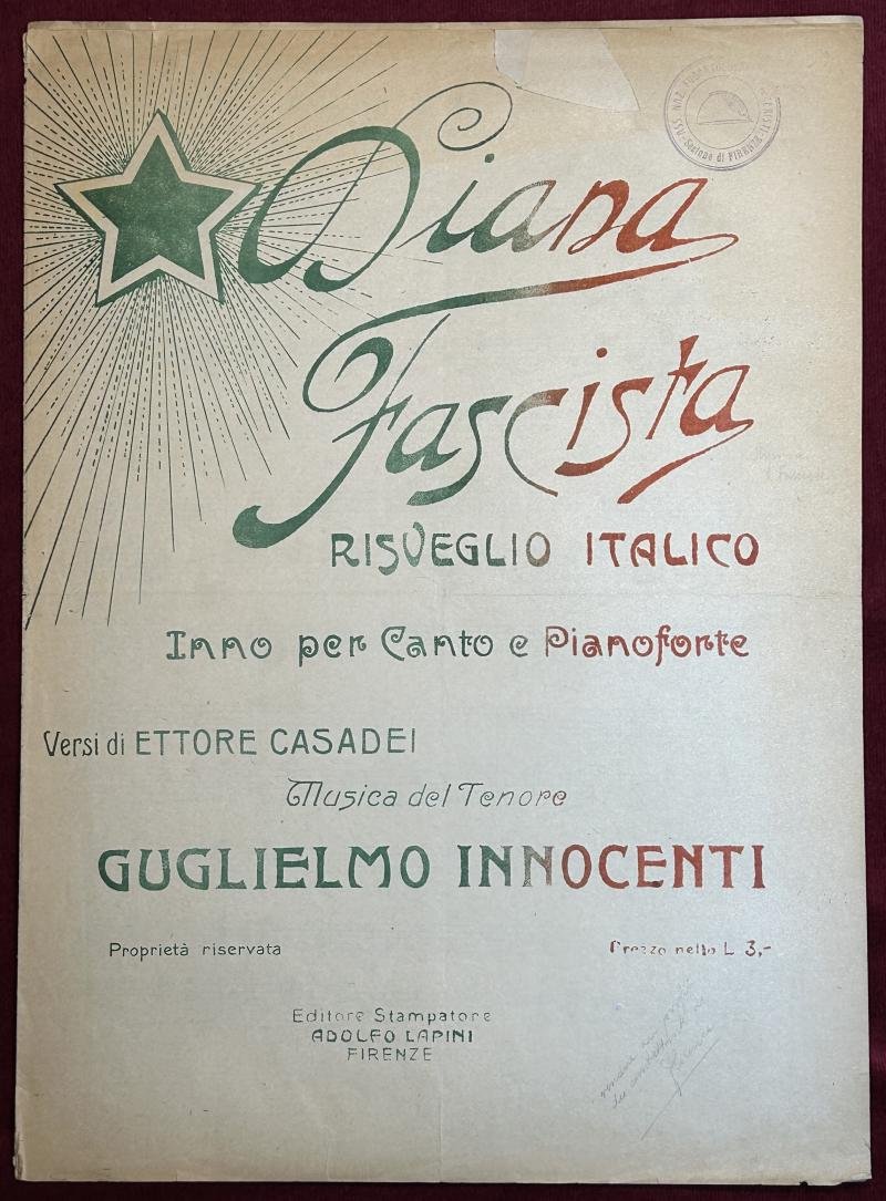In an excellent condition Italian Fascist sheet music 'Diana Fascista' Italian Fascist marshing music Music by Guglielmo Innocenti Lyrics by Ettore Casadei