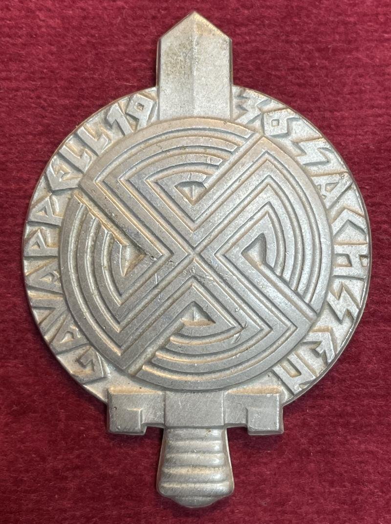 In a very good condition a Gau Appell Saxony 1936 Frontside: Rune style Swastika with Sword behind. Gau Appell 1936 Sachsen Backside: Safety pin. 20.-21. Juni 1936. Maker marked Wächtler & Lange from Mittweida.