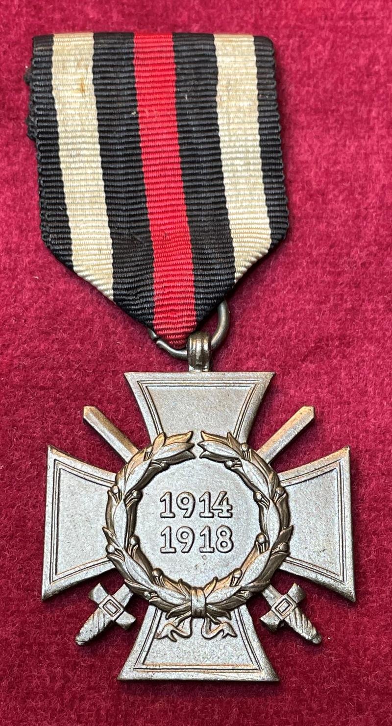 In an excellent condition a honor cross with swords Maker marked (barely visible) W.R. which stands for Werner Redo from Saarlautern. Ribbon has been sown to the ring.