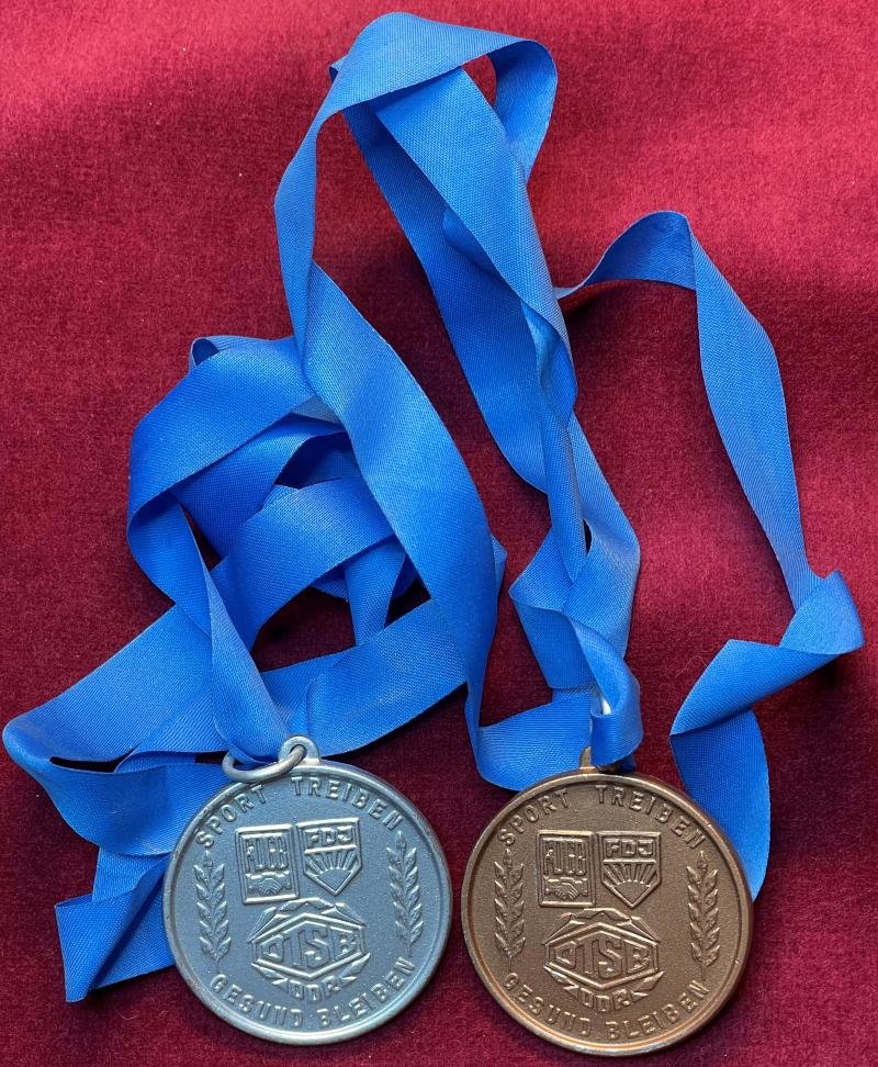 In an excellent condition a district sports festival of the working people silver and bronze DDR medals Frontside: Kreissport der WerktÀtigen Backside: Sport Treiben Gesund Bleiben. FDGB, FDJ and the DTSB DDR