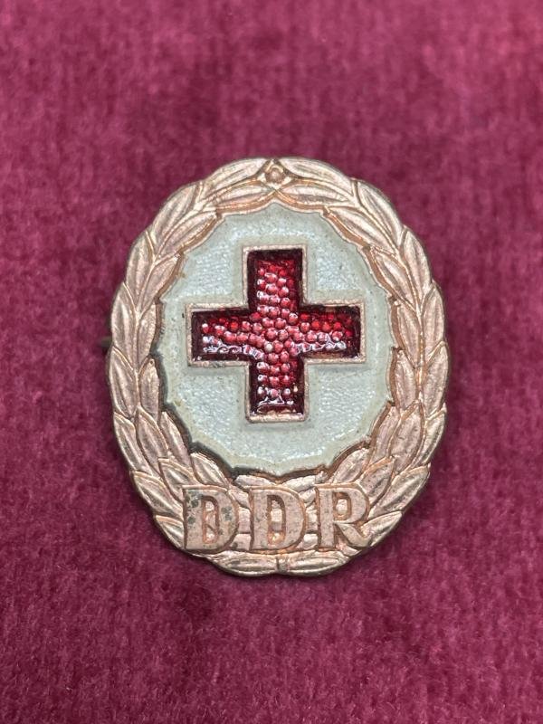 In an very good condition a East German Red Cross achievement badge A wreath with the letters DDR and a red cross in the middle. No maker marks present. Safety pin More then one medal present. Medal could be sligthly different then picture on the webshop, but condition will be similar.