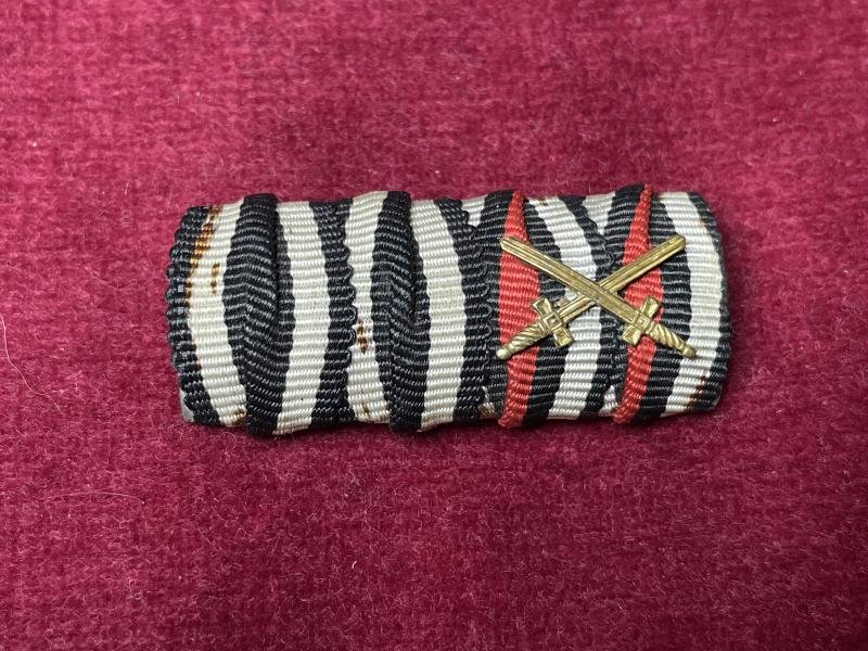 In a very good condition a Ribbon bar 2 medals The ribbon bar is made in South German style 1. Eisernes Kreuz 2. Klasse 2. Frontkämpferkreuz mit Schwertern