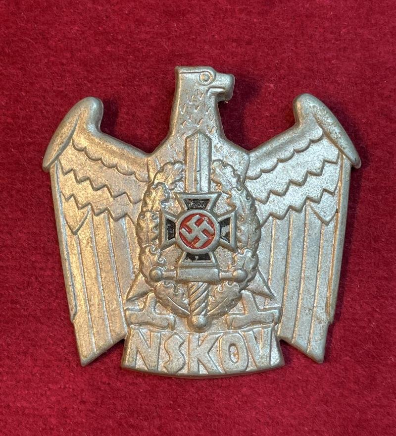 In a very good condition a NSKOV Disabled Veterans Organization Visor cap insignia This specific version has a silver finish and is for 90% still perfect. The prongs on the backside have been soldered