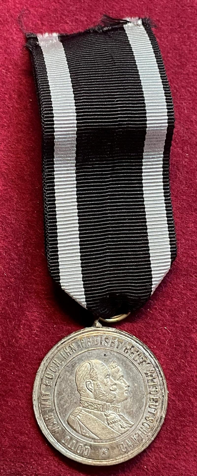 In a very good condition an anniversary medal 50 years of marriage Wilhelm I Ribbon is new! King of Prussia Wilhelm Friedrich Ludwig von Preußen married Augusta von Sachsen-Weimar-Eisenach on June 11th 1829. This remembrance coin is to remember their 50 years of marriage. Since 1871 Wilhelm was know as Wilhelm I the first Deutsche Kaiser for the Deutsche Reich