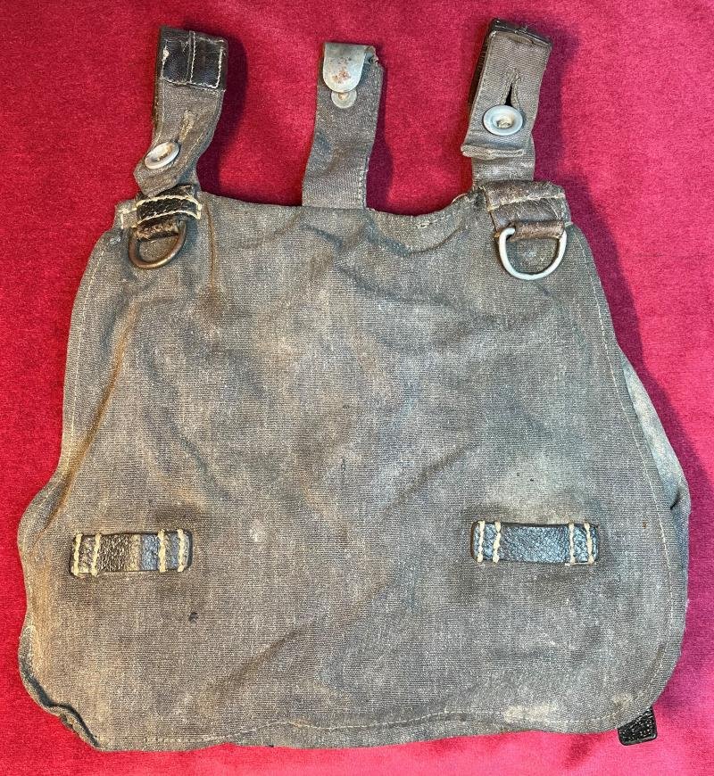 In a used but good condition a Luftwaffe Bread Bag M31. An early blue Luftwaffe bread bag. The leather is still flexible. Some old repairs are visible, this is most likely done during the war. In the whole the Brötbeutel is in good condition