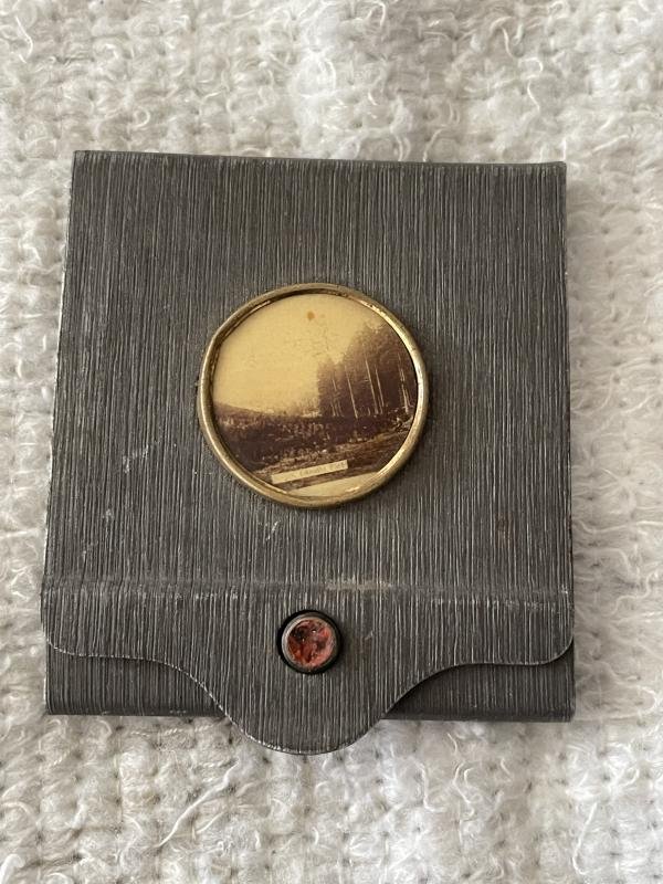 metal Match holder Wehrmacht/ Officer probably purchased privately with photo. Original matchbox included. The Patented matchbox in German explains that you can light continues matches with it. It can be used by gentlemen who can put it in their pocket and for ladies who can keep it in their handbag. Made by the Company Jupiter from Hamburg