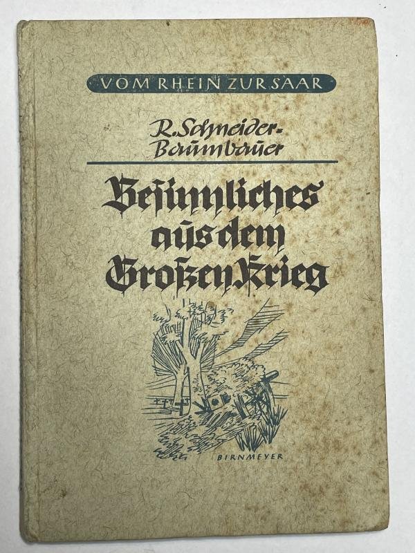 Vom Rhein zur Saar - Himmlisches aus dem großen Krieg With drawings by Adolf Keßler Saarpfälzische Schriftenreihe, edited by Hermann Moos WK1 R. Schneider-Baumauer In cooperation with the German Labor Front '' Strength through Joy ' Gaudienststelle Saarpfalzu Published in 1940 by Westmark Verlag, Neustadt an der Weinstrasse Condition good to very good, see pictures