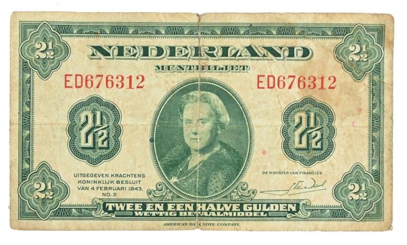 In a very nice used condition a US WW2 Allied Invasion banknote for Holland. The banknote has a value from '2,5 Gulden' and was issued for the Market Garden Operation.