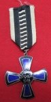 Original era manufacture. A very well made blue enameled cross, as worn by members of the organization of Former East & Westfront Soldiers.No enamel damage, frosted silver color alloy reverse, which is maker marked Fleck & Sohn, Hamburg. Nice old black & white ribbon. Cross measures 40 x 40 mm.See page 125, figure 2.02.25 d, in Price Guide, Orders & Decorations of Germany 1871-1945 by Niemann.
