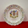 Original era manufacture. 8' ceramic plate with a neat center decoration of the flags of the Allied nations, Belgium, Russia, France & Japan with the Union Jack in the center. There is a hairline crack at the 2 O'clock position, not that visible really. Beyond that it shows normal age and wear. One available.