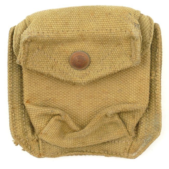 Canadian P37 Ammunition Pouch for Revolver/Pistol Ammunition. The webbing pouch is nicely maker marked and dated 1940, it is also marked with the Canadian Broad-Arrow. Nice original holster in good used condition.