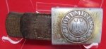 Original era manufacture. Aluminum enlisted pattern buckle with an anodized gold finish. Securely sewn brown leather frog which is clearly marked with an Eagle over M, and dated 1937. Scarce Kriegsmarine pattern enlisted buckle.