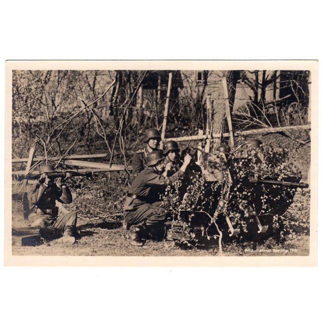 This is a nice original period postcard 'Leichte Flak im Erdkampf' from the series 'Unsere Luftwaffe'. The postcard is showing a photograph of Luftwaffe soldiers with a 3.7 cm Flak anti-aircraft gun. The postcard is in excellent unsent condition and measures approximately 14 x 9 cms. Nice and decorative original postcard.