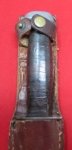 Original period manufacture. Six inch chromed steel blade showing light surface scratching, with a factory sharpened edge, no corrosion issues. Dark brown stacked leather grip with a zinc pommel cap which is pinned to the blade tang. RH PAL 36. Nice luster to the leather surfaces, no broken or missing segments.Sound russet leather scabbard, of riveted and sewn construction, displaying honest wear and age from service use. The pommel strap is intact.