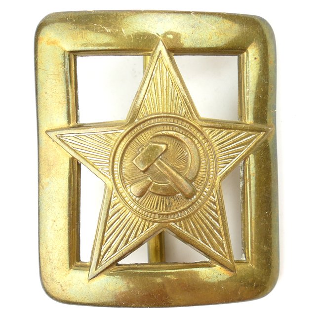 Russian / Soviet M35 Officer's Belt Buckle. The brass type buckle is showing the Soviet Hammer and sickle symbol in a star. Nice original wartime Russian Officer's belt buckle in good used condition.
