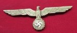 Original era manufacture. A nice quality example of fire gilded brass with polished highlights around the wreath and swastika. Pinback reverse, unmarked, with an operable horizontal mounting pin and lower vertical hook.