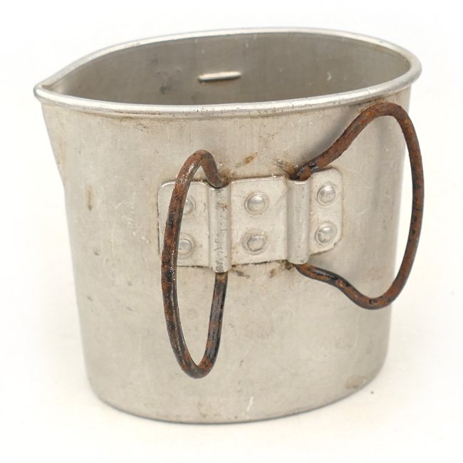 Wehrmacht M31 Drinking Cup (Trinkbecher 31), early pattern. Standard equipment aluminum drinking cup with a 1/4 liter capacity. The drinking cup is not visible maker marked or dated. This would be a nice addition to a personal kit display. Nice original example in good used condition.