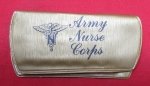 Original era manufacture. US WWII Army Nurse Corps purse sized sewing and manicure kit. Never used with 6 colors of thread, two needles, needle threader, metal nail file, emery board and cuticle tool housed in a gold colored case with the medical emblem and Army Nurse Corps on the front. Several in stock, minor details will vary, all are unused.