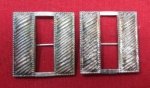 Original period manufacture. Matched pair of silver finish insignia in the rank of Captain. This style has been referred to as false embroidery, due to the decoration on the tops of the rank bars. Pinback reverse, each measuring 17 x 22 mm. Silver patina finish to the pair.