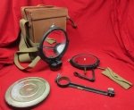 Original period manufacture. Based on the 1888 model, this great looking contraption appears to be very complete and comes with the following; Russet leather storage case, tin with spare mirrors, small tool kit in its canvas case, dual signaling mirrors with mounting bracket. All of the components fit into the leather storage box, there are no empty pockets so we will presume the thing is complete. Condition is very good, no damage with a fair amount of original black lacquer remaining on the brass fittings. The US Army experimented with Heliograph systems in the Great Plains and Southwest, especially Arizona and New Mexico. The earliest devices were originally provided by Great Britain. In 1890 a test of the system in Arizona and New Mexico was done, beginning from Fort Whipple in Arizona, to Fort Stanton in New Mexico. The test covered over 2,000 miles and involved 33 officers and 129 enlisted men. A message of 97 words was sent and received in 22 minutes.