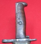 Original period manufacture. Classic WWI Springfield rifle bayonet, Springfield Arsenal marked (SA) and dated 1918. Steel patina finish to the blade with some shallow surface corrosion on the right side of the blade at the point. Even steel patina finish to the guard and pommel. Original walnut grips, with the markings N (Broad Arrow) Z stamped into the right side grip plate. Has to be a story there. Canvas covered, wooden bodied scabbard with a leather tip. One of the lock projections on the scabbard throat has been modified, now will only lock into position one way. Sound bayonet overall.