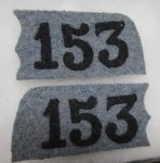 Original era manufacture. Horizon blue wool backing with dark blue wool numerals sewn in place.