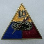 Original period manufacture. Enameled obverse with a pinback reverse, unmarked. The 10th Armored Division, 'Tiger Division', served in France during WWII, landing at Cherbourg on 23 September 1944, assigned to Patton's 3rd Army.