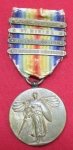 US, WWI Victory Medal, 4 Campaign Clasps, Original Ribbon
