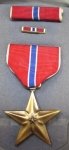 Original era manufacture. US cased Bronze Star with ribbon bar and enameled bar. Crimp brooch, near new condition.