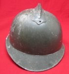 Original era manufacture. Two piece stamped aluminum helmet and crown piece painted in Italian green. Inside are two movable loops for a chinstrap, and two mounting points for a rudimentary liner. The helmet is slightly out of round from storage, with the surface of the helmet exhibiting corrosion staining. The helmet bowl opening measures 7 inches front to back, and 7 inches side to side. OK, now this is what my guess is as to what this little helmet represents. The other possibility being an officers private purchase parade helmet. But as the helmet is rather small, I am going with the children's version and pricing it that way.