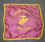 Original era manufacture. Golden yellow embroidery on a purple imitation silk material, with matching golden yellow edging, blue cloth covered reverse. Measures 16 x 17 inches, normal age and wear, no damage.