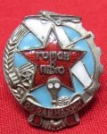 Original era manufacture. Enameled brass badge with a screwpost reverse, measures 20 x 25 mm.