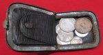 British WWI Leather Coin Purse with 11 Coins, Copper & Silver