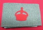 Original era manufacture. Circa 1915, die-cut, red wool crown, machine sewn to a olive brown wool backing material. Thin tan cotton backing material with faint inkstamps and a serial number of 98887. Here's a Wikipedia link to the Derby Scheme.