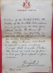 Original period manufacture. An example of the original printed letter written by King George V, and presented to each American Doughboy who landed in England in 1918. Yellowing to the edges, with a crease at center.