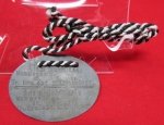 Original era issue. German WWI, two piece zinc identity tag, Mommenheim. Reproduction Prussian neck cord.