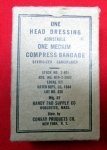 Original era manufacture. Adjustable Medium Head Dressing, Compress Bandage. Sterilized, camouflaged. Dated Sept 20, 1944. Manufactured by Handy Pad Supply Co., Worcester, Mass. Distributed by Conray Products Co, New York, NY.