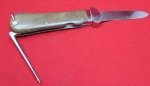 Original era manufacture. A very clean example of a non take-down model, with a clear cross-grain polished blade with the Weyersberg logo and rostfrei on the reverse side. The locking mechanism is broken but all parts are present.The light color wood grips are not cracked or chipped, showing only light marring and denting from use. Luftwaffe proof on the base of the marlinspike.
