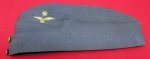 Original era manufacture. RAF blue wool cap with a two piece brass insignia on the left front. Black silk lined interior with a velvet sweatband. Size about a 7. Normal age and wear.