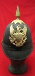 Original Ridabock National Guard pattern body of dark blue wool covered cork, with original Infantry side buttons, helmet plate and spike base. The body is in sound condition, no cracks, dents, or mothing, with sound leather edge binding. Named on the interior, size about a 7.