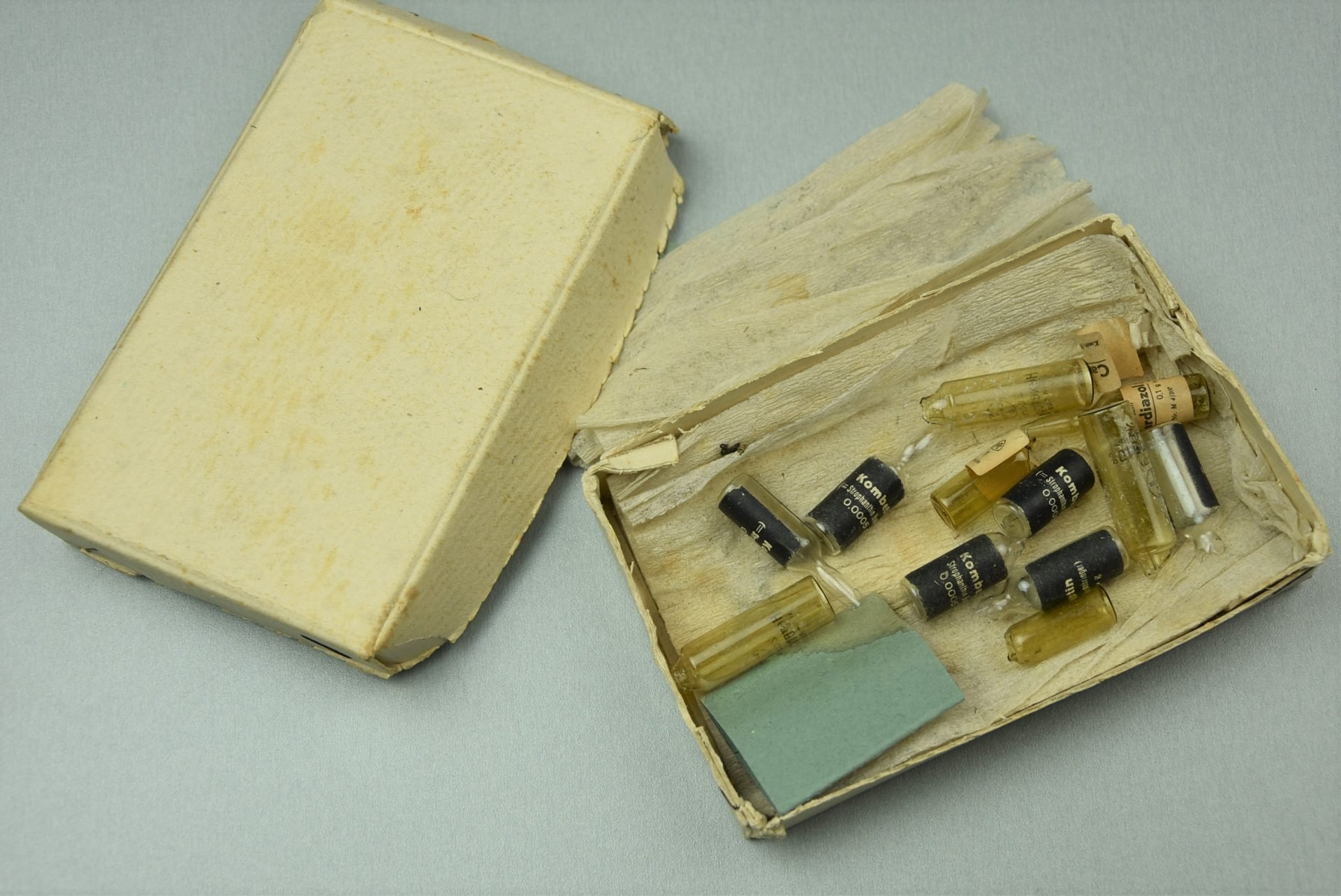 Mixed box of different hearth medicines. All bottles are opened and empty.