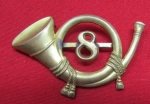 Original era manufacture. Gilded brass insignia, 8th US Infantry. No company letter, looks as if it never have had one. Missing the screwpost attachment on the reverse.