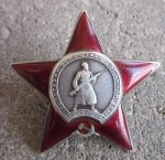 Original period manufacture. Massive silver star with a beautifully enameled obverse. No replaced enamel, normal age and wear. Alloy screw plate on the reverse. The serial number 2770958 places this award around 1946-47